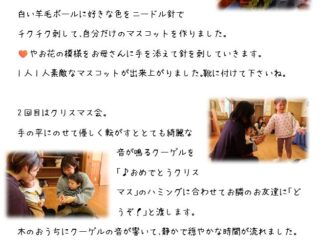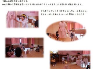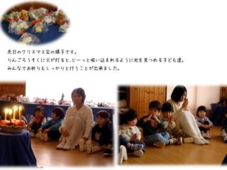 「リズムある生活」「お歌、やさしい言葉がけ」「自然素材・手作り遊具」「芸術教育…水彩画・クレヨン画」「本物体験…農園活動や自然いっぱいの園庭での外遊び」物的環境を整えながら、先生は「第2のお母さん」幼稚園は「第2のおうち」として人的環境を整えてまいります。