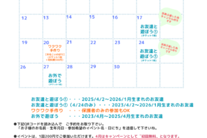 【子育て支援】4月の子育てハウス イベントカレンダー