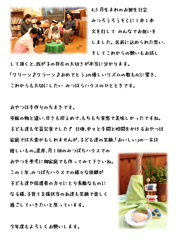 みつばちハウスブログ4月