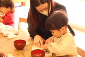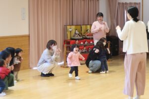 なずな広場でクリスマス会を行いました。 りんごろうそくに火を灯して「みんなが幸せになります様に・・」…