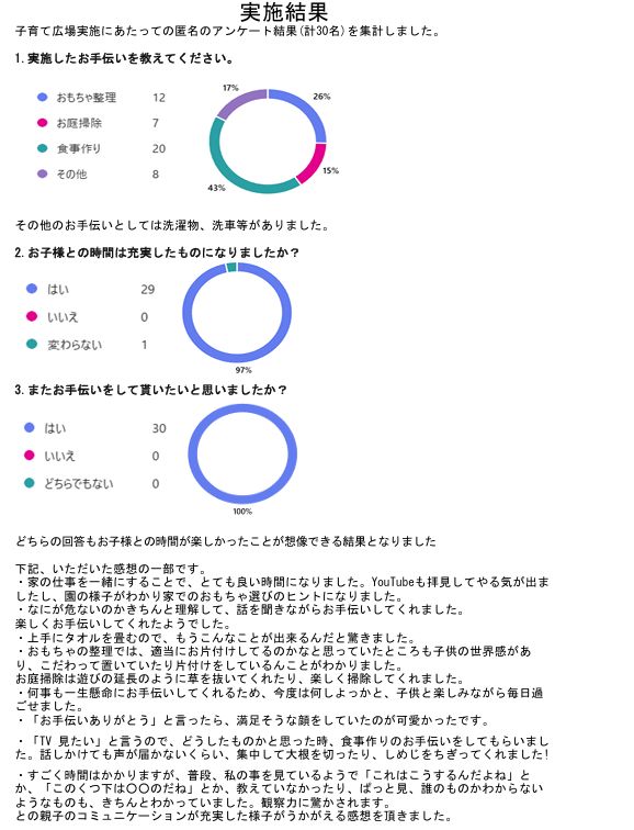 「複数のお手伝いをした。」との感想も多くありましたので、