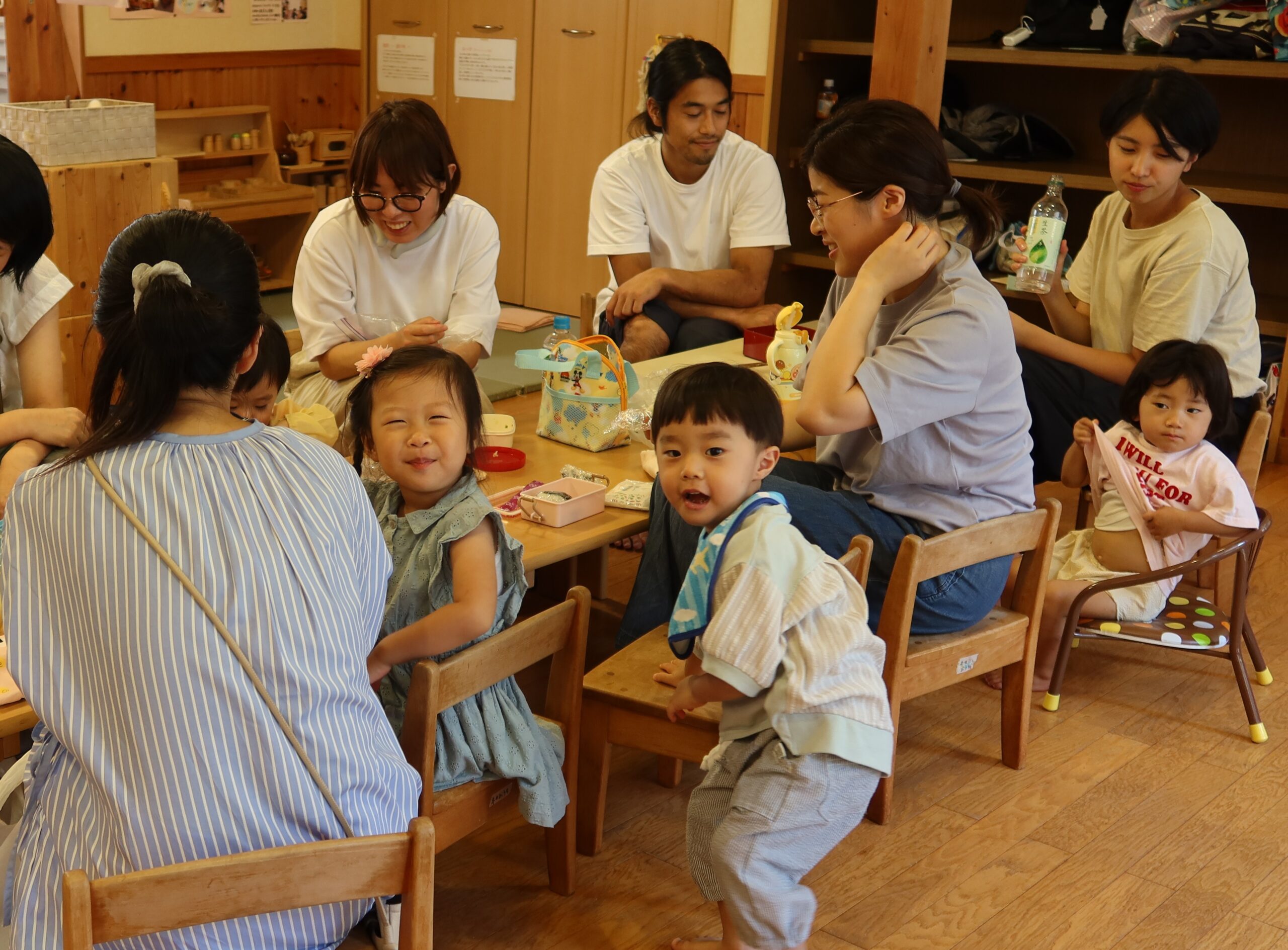 水遊びの後は、みんなで楽しくおしゃべりしながらのお弁当です。