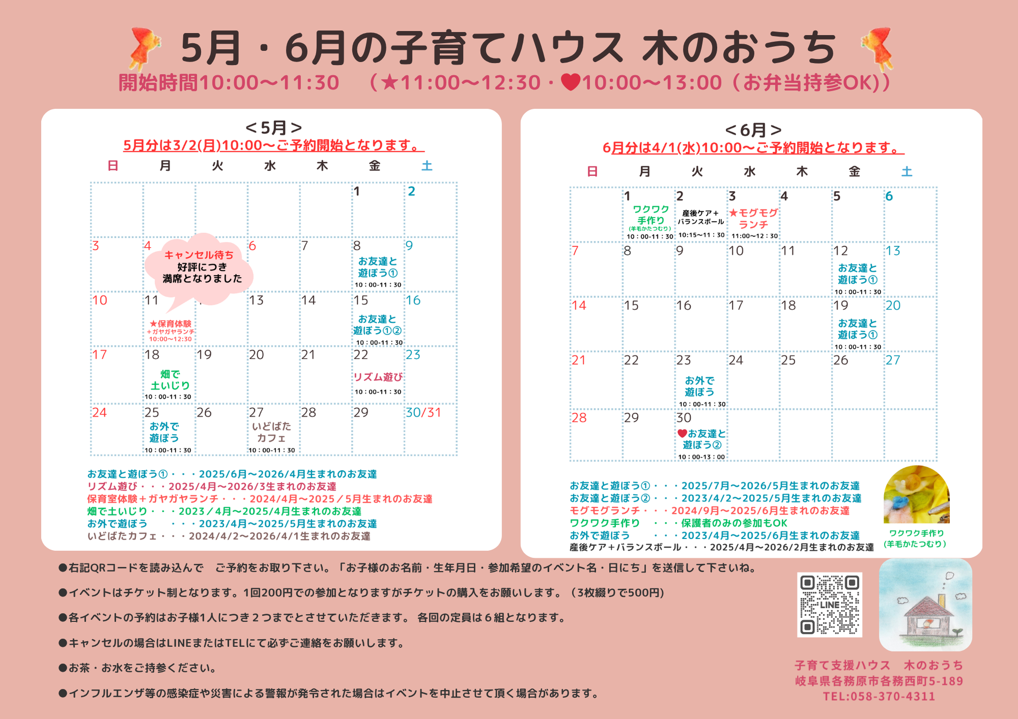 【子育て支援】5・6月子育てハウス イベントカレンダー