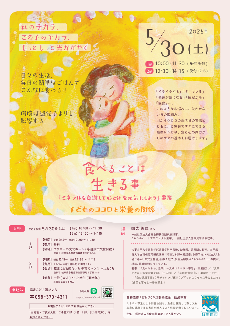 ※託児はありません。(但し、認定こども園だいち及び各務原保育園の在籍児のみお預かり可能です(1部限定)申込みをされる場合お子様のお名前を記して専用LINEからお申し込み下さい)